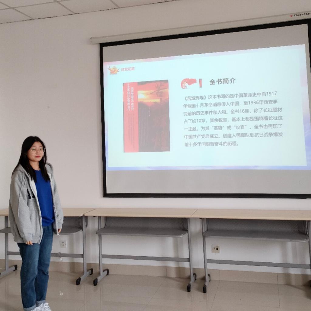 历史是最好的教科书,也是最好的清醒剂。在今日的读书分享会中,护理学院参加活动的全体党员以历史为线索,一起在书中寻找历史,感悟那些艰难的时光。首先由19级本科党员于淼讲述她通过读书得到的感悟:为什么社会主义能在中国扎根生长?中国道路能成功是历史的选择,它以中国历史的发展趋势为方向、以中国的现实国情为基础、它以解决中国的问题为目的,秋收起义、打土豪分田地,这些取得了人民的认可,证明了革命的可行性,给中国人民指明了全新的方向。通过对《苦难辉煌》一书的介绍,19级本科党员孙薇说:这本书让人重温亿万中国人历经艰难险阻而重获新生的苦难历史;展示了人民军队慨然赴国难,最终夺取胜利的历史轨迹我们应当以史为鉴,再次领会社会主义思想在当今的意义。他们以自己的一腔热血,引导着中华民族的未来的方向,改变着中华民族的历史的命运。最后,19级本科党员王语菲表示我们应不断的向思想注入新鲜的、属于中国的血液,要做到感悟历史,不忘初心,学红色精神,坚定跟党走、坚定为实现中华民族伟大复兴中国梦而奋斗的理想信念。