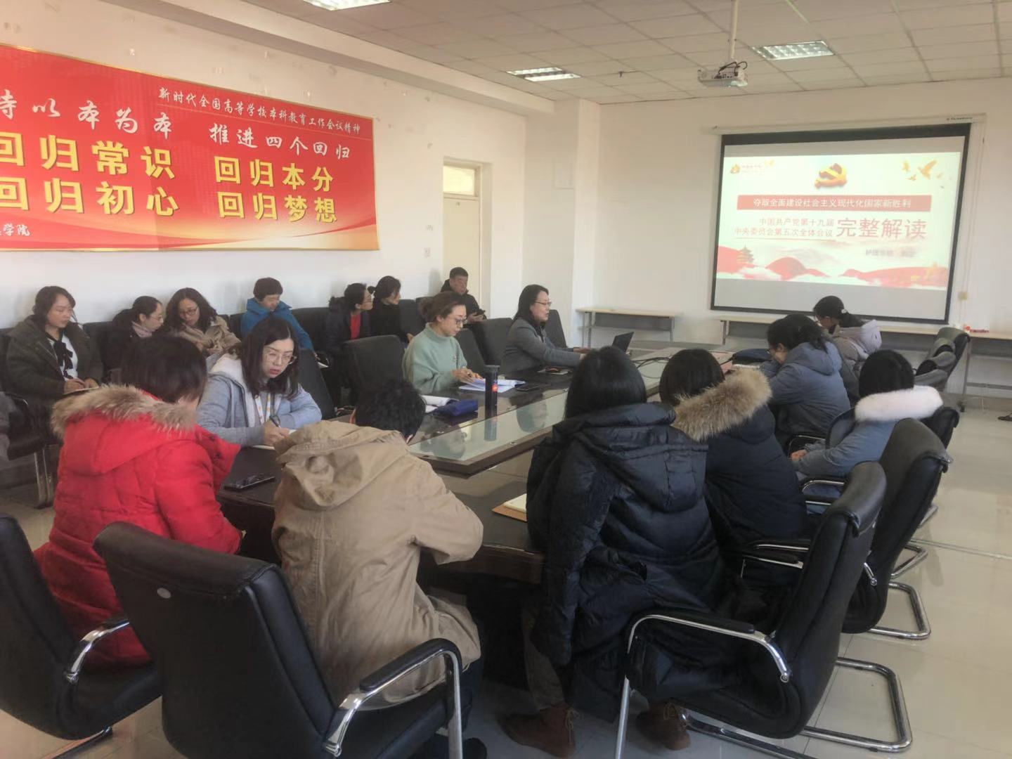 会上,郭宏院长从十九届五中全会的一个重要判断、决胜全面建成小康社会取得的10方面决定性成就、我国在国际和国内发展环境面临的机遇和挑战、2035年要实现的九方面远景目标、“十四五”时期经济社会发展的6个方面主要目标、实现奋斗目标的12方面具体举措以及十九届五中全会十四个关键词等七个方面对党的十九届五中全会精神进行了全面系统深入的解读。随后,全体党员围绕“党的十九届五中全会讲话精神”展开了专题讨论。