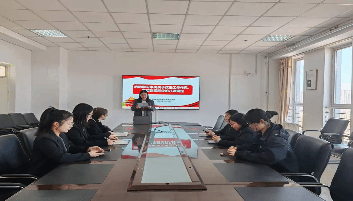 2025年3月28日,护理学院本专科学生党支部召开中央八项规定学习教育启动部署会,深入学习贯彻习近平总书记关于深入贯彻中央八项规定精神学习教育的重要讲话和重要指示精神,传达护理学院建设工作领导小组会议精神,研究贯彻落实工作,启动学习教育。会议由支部书记倪秀茹主持,支部委员及学生党员参加会议。