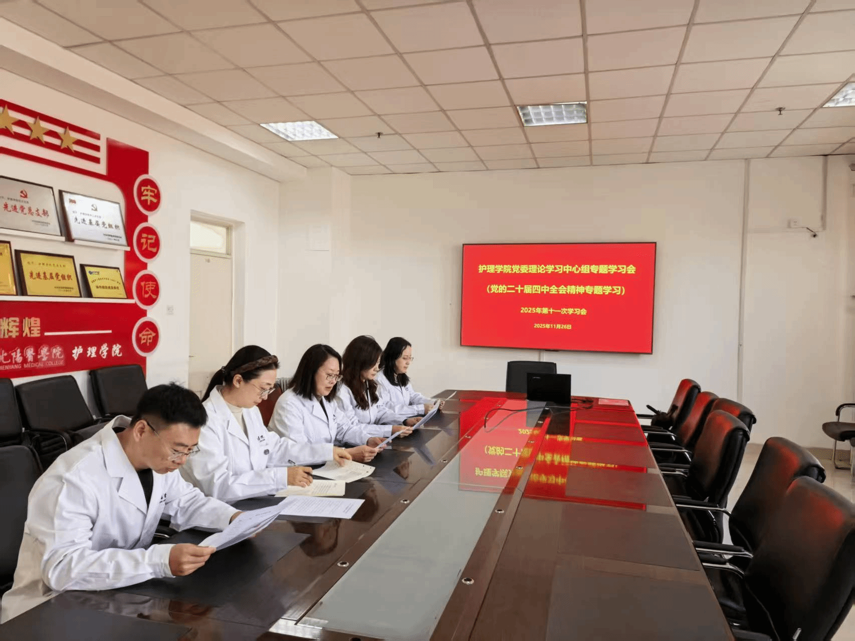 11月26日下午,护理学院党委召开党委理论学习中心组第十一次学习会。本次为党的二十届四中全会专题学习会。学院领导班子成员参加学习会,学院党委书记叶琳主持会议。