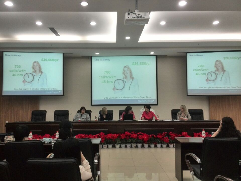 报告共分三个部分:第一部分由博士生Regina讲解了美国临床护理巡视的研究进展。为了提高护理质量,减少患者的呼叫次数,现在美国临床普遍采用1小时巡视制度,该制度有效提高了患者住院期间的安全系数和满意度。