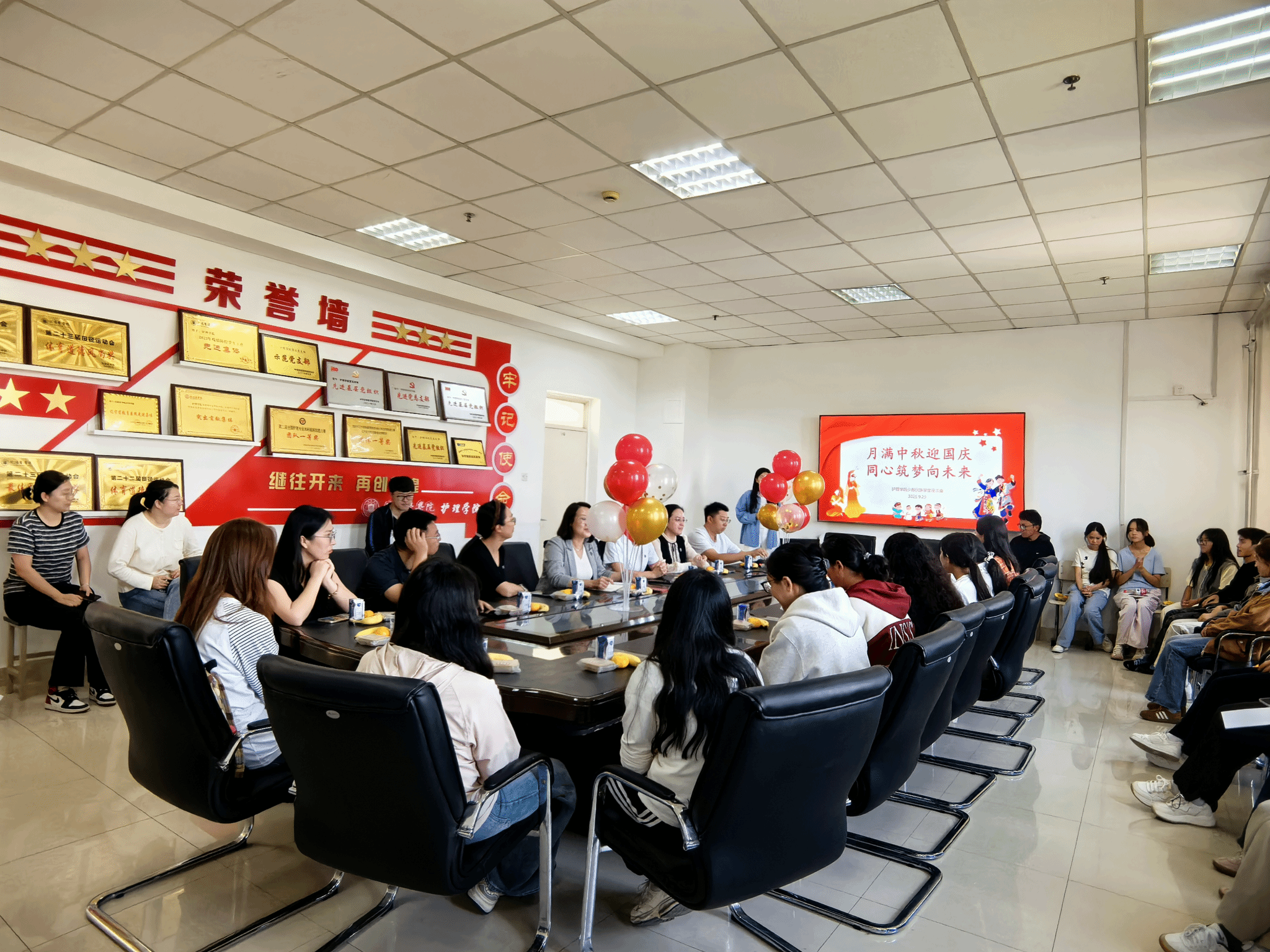 在国庆、中秋双节来临之际,为弘扬中华优秀传统文化,促进各民族学生交流交融,9月29日,护理学院在B502会议室举办少数民族学生中秋座谈会。护理学院院长郭宏、党委书记叶琳、副院长赵冰、魏家李、仝慧娟、学生科长、辅导员以及来自维吾尔族、藏族等民族的30余名学生共聚一堂,品月饼、话团圆、叙情谊。