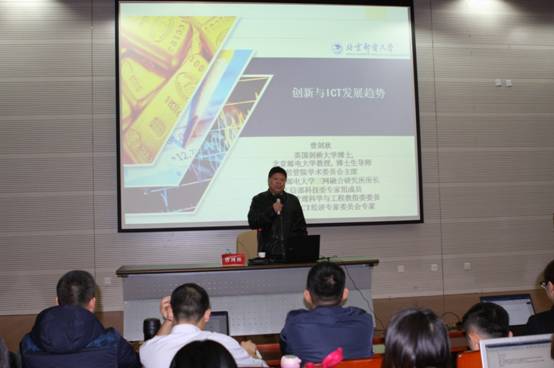 2018年3月21日晚,《坚持新发展理念的基本方略》由北京邮电大学曾剑秋教授以《创新与ICT发展趋势》为题顺利开讲,beat365beat365在线唯一官网谢玉进老师担任主持。曾剑秋教授是英国剑桥大学博士,现任北京邮电大学经济管理学院教授、博士生导师,三网融合研究所所长,信息经济与竞争力研究中心主任,工业和信息化部科技委专家组成员,教育部管理科学与工程教指委委员,工业和信息化部ICT经济专家委员会委员,北京邮电大学经济管理学院学术委员会主席。在ICT产业政策与市场、企业竞争力、网络融合、5G技术演进、大数据、人工智能、物联网等方面有深入的研究与独到见解。曾教授的授课注重互动,以同学们关心的问题开场,紧密结合“创新”这一主题词,深入浅出地结合我国信息技术的发展诠释了什么叫创新和如何创新等基本问题。曾教授的讲授紧贴时政热点和学生关注点,深刻梳理了2018年政府工作报告和党的十九大报告关于创新的相关论述,对“互联网+”行动计划、“国家大数据战略”“网络强国”等国家战略和部署,进而从创新与智慧社会、国家创新体系建设、智慧社会与智慧城市、宽带中国与信息消费、信息化政策与ICT市场开放、大数据、人工智能与实体经济等方面对我国当前的信息化战略落实、网络强国建设、宽带、数字经济与5G技术、大数据、人工智能和物联网发展及前景进行了详尽的讲解。曾教授的讲授平实而有力、质朴而前沿,深入浅出,娓娓道来,极大地开拓了在场师生的视野,深化了对科技创新的认识和理解。谢玉进老师用“内行、前沿、高端”六个关键词对曾教授的精彩讲授进行了点评,认为曾教授用非常有限的时间系统地清晰明快地梳理了我国复杂的信息化进程,带领同学们很好地领略了ICT发展最前沿的技术风采和社会可能性,带给大家一种高端的资讯冲击和深刻的创新思考,很好地诠释了什么是创新,并内含着如何创新的方法论,对同学们理解创新发展理念有着极大的帮助。200余名同学现场聆听了授课,反响十分热烈。