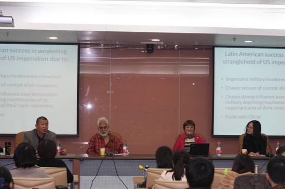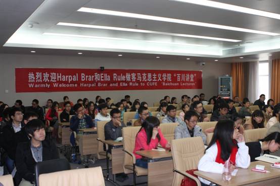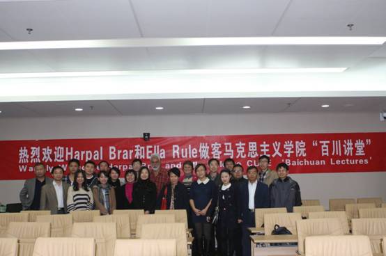 11月5日下午,beat365在线唯一官网“百川讲堂”第三期在学术会堂706室隆重举行。英共(马列)主席Harpal Brar和副主席Ella Rule分别做了题为“当前世界的形势:经济危机的根源与进程”和“工人阶级在解放拉丁美洲国家中的历史任务”的专题报告。讲座由beat365在线唯一官网研究生教研室主任王淼博士主持,蔡大梁博士担任翻译。beat365在线唯一官网全体师生、学校研究生会全体成员、财政学院研究生代表、沙河校区“园区学生党员先锋队”骨干成员等百余人参加此次活动。