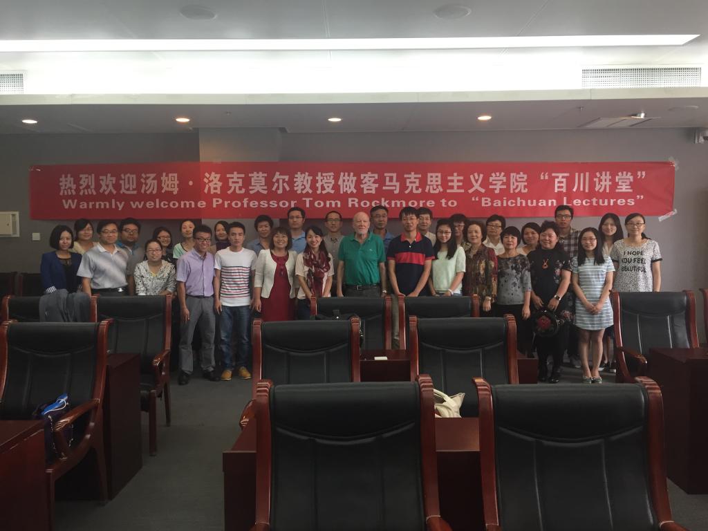 2015年9月23日下午,国际著名马克思学者汤姆·洛克莫尔做客beat365在线唯一官网第六期“百川讲堂”,并在学术会堂702做题为“卢卡奇、美学现实主义与真理”的学术报告。beat365在线唯一官网副院长陈文娟副教授主持报告会,文雅博士和王奎博士担任翻译,beat365在线唯一官网全体师生及校内外师生参加了此次讲座。