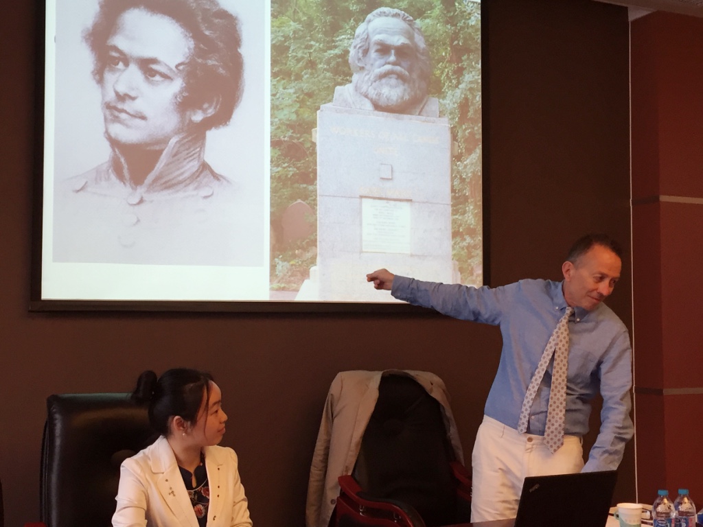 卡弗教授第二讲的主题是“还原马克思”,由刘亚琼博士进行翻译。教授主要介绍,马克思是如何从一个名不见经传的青年人,发展和转变成为我们所熟知的马克思的。卡弗教授阐释了两种对人物不同的分析视角:第一种是传记作家的回顾视角,他们已经把马克思当作是一个伟大的思想家和理论家;第二种是回归的视角,思考马克思写作每个作品当时的历史背景和特定目的,并分析造成真实形象和人们认知形象之间差距的原因。教授详细介绍了恩格斯对马克思的学者化塑造,李普特内西和倍倍尔对马克思的政治建构,梁赞诺夫对马克思手稿的加工等不同阶段。并且认为,马克思后来的传记家及其书籍研究者对人们认识马克思的影响力,比马克思自己大得多。