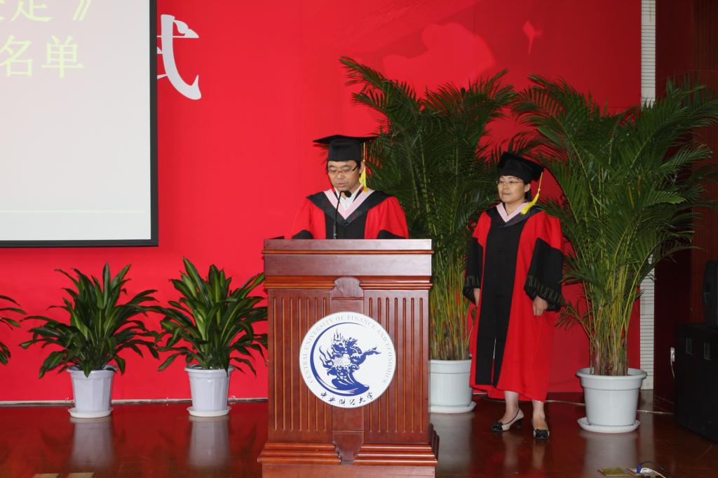 院长冯秀军教授、党总支副书记朱家梅教授、副院长陈文娟副教授、副院长哈战荣副教授、博士生导师李志军教授、杨敏教授、学院教职工代表、全体学生和部分毕业生家长代表参加了毕业典礼。典礼由党总支副书记朱家梅教授主持。
