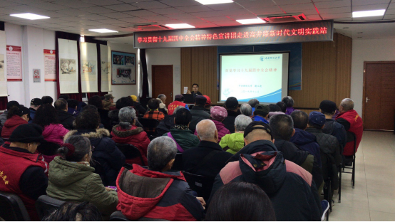 2019年12月12日,beat365王静老师走进石景山南宫嘉园社区和老山东里北社区,给老街坊志愿者们、党员们带来了两场以“贯彻十九届四中全会精神 坚定社会主义制度自信”为主题的宣讲。