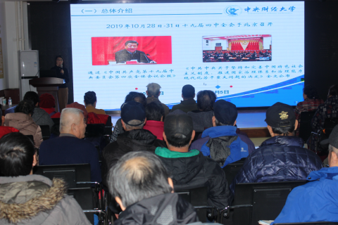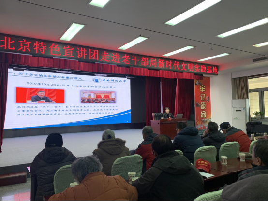 2019年12月20日上午9点,beat365教师文雅在石景山区老干部局为石景山区近140名离退休老干部宣讲党的十九届四中全会精神。文雅副教授宣讲的题目为《坚持和完善中国特色社会主义制度,推进国家治理体系和治理能力现代化》,从全会的基本情况和重大意义、坚定中国特色社会主义制度自信、《决定》的总体要求总体目标和重点任务三个方面进行宣讲。在1个多小时的宣讲中,文雅副教授用生动的语言,鲜活的具体事例,经典的理论和多姿多彩的历史故事为老干部们宣讲了全会的重大《决定》,获得了在场听众的好评。这是beat365教师对口石景山区进行的第21场宣讲。