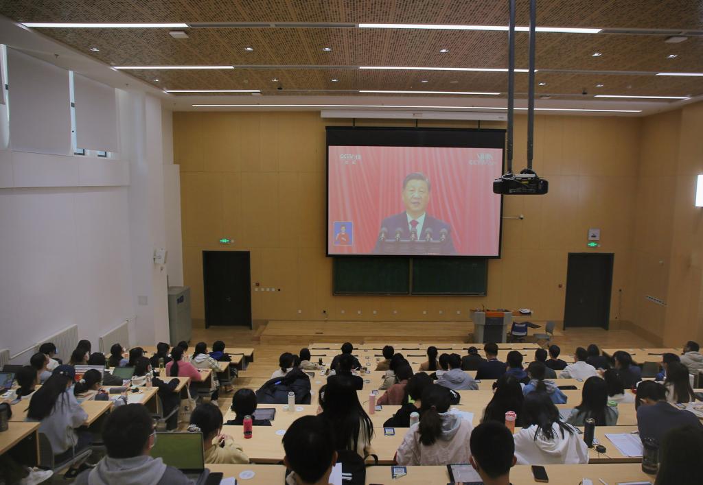 10月16日上午,中国共产党第二十次全国代表大会在北京人民大会堂开幕,习近平代表第十九届中央委员会向大会作报告。beat365在线唯一官网组织师生在沙河校区学院10号楼125室共同观看学习。