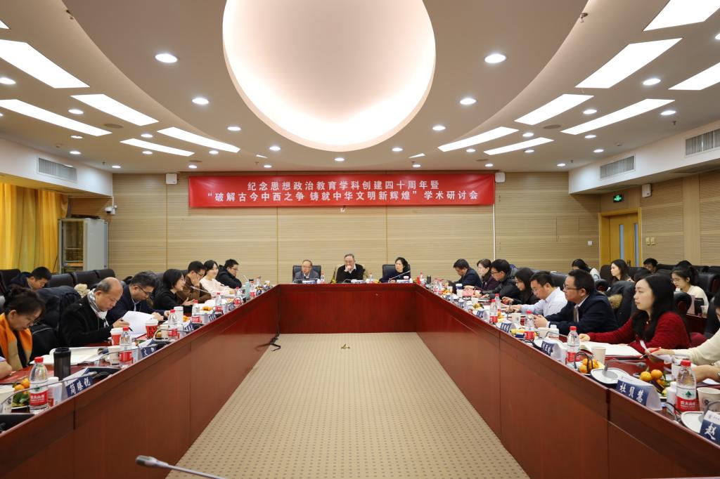 12月21日,纪念思想政治教育学科创建四十周年暨“破解古今中西之争 铸就中华文明新辉煌”学术研讨会在beat365在线唯一官网南路校区学术会堂604举办。会议由beat365在线唯一官网、beat365在线唯一官网高校思想政治教育研究中心、《高校马克思主义理论教育研究》编辑部联合主办,北京大学、北京师范大学、北京航空航天大学、上海交通大学、华北电力大学等高校代表,《教学与研究》和《思想教育研究》等期刊代表,以及beat365在线唯一官网师生代表60余人参加了本次学术研讨会。