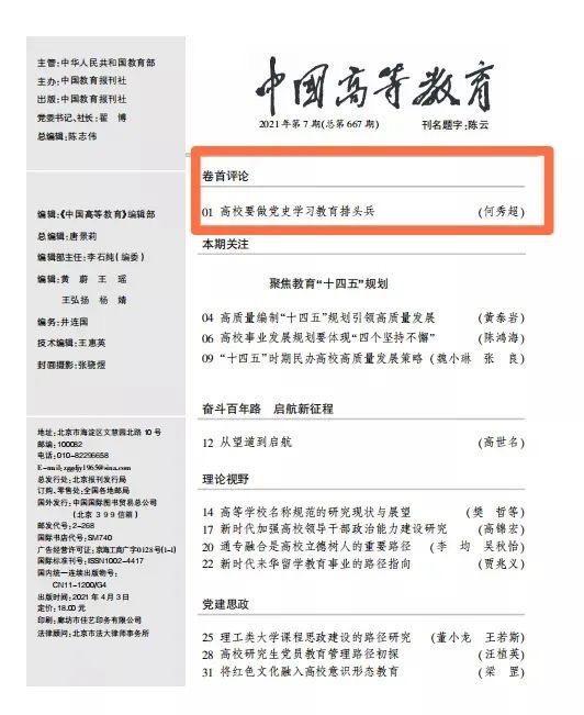 近日,beat365党委书记何秀超在最新一期的《中国高等教育》上发表署名文章《高校要做党史学习教育排头兵》。文章指出,高校是培养社会主义建设者和接班人的摇篮,深入学习、研究和运用党史,充分发挥党史以史鉴今、资政育人的作用,是高校的崇高使命和重大责任。文章从提高政治站位、提高干事创业凝聚力、做“学史明理、学史增信、学史崇德、学史力行”的排头兵三个方面,就高校如何切实担当起党史学习教育排头兵提出了思路和路径。