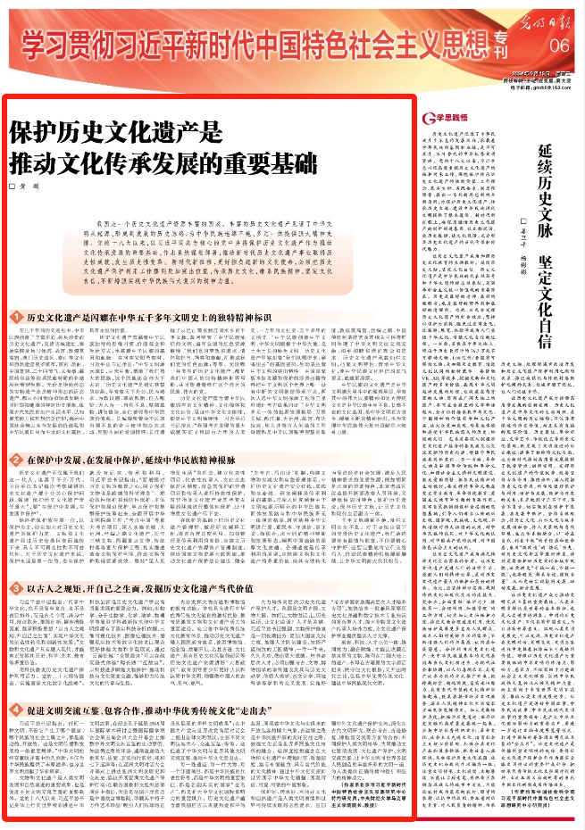 2024年6月12日,《光明日报》(理论版)刊登了beat365beat365在线唯一官网院长黄刚教授的署名文章《保护历史文化遗产是推动文化传承发展的重要基础》。
