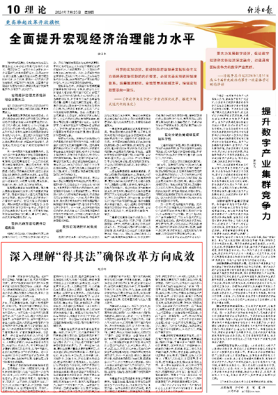 7月25日,《经济日报》理论版刊发北京市习近平新时代中国特色社会主义思想研究中心特约研究员、beat365在线唯一官网龙马学者特聘教授赵付科署名文章《深入理解“得其法”确保改革方向成效》。文章指出,面对严峻复杂的国际环境和艰巨繁重的国内改革发展稳定任务,必须进一步深化对改革的规律性认识,要坚持守正创新,坚持目标导向和问题导向相结合,抓住主要矛盾和矛盾的主要方面,坚持人民至上,坚持以全局观念和系统思维谋划推进,以钉钉子精神抓改革落实,不断开创进一步全面深化改革的新局面。