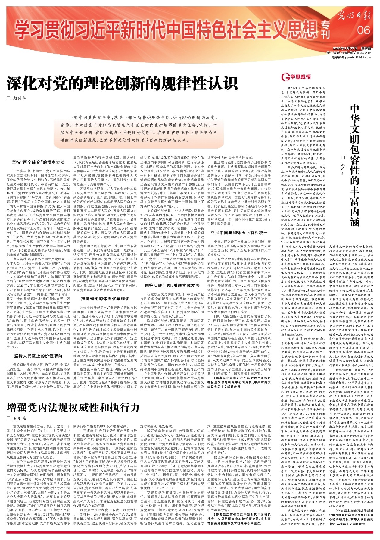 一部中国共产党历史,就是一部不断推进理论创新、进行理论创造的历史。党的二十大提出了开辟马克思主义中国化时代化新境界的重大任务,党的二十届三中全会强调“在新的起点上推进理论创新”。在新时代新征程上取得更为丰硕的理论创新成果,必须不断深化对党的理论创新的规律性认识。