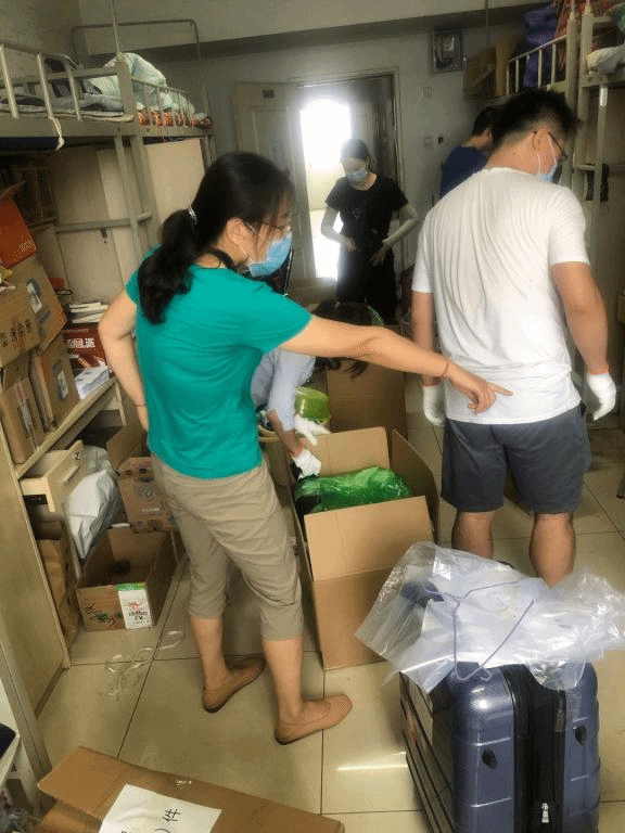 徐芳、杨向鹏、王亚男、朱书涵等同志在新冠疫情导致学生无法返校的情况下,亲自帮学生打包行李并寄出。