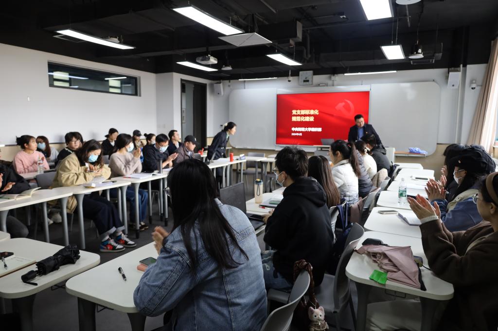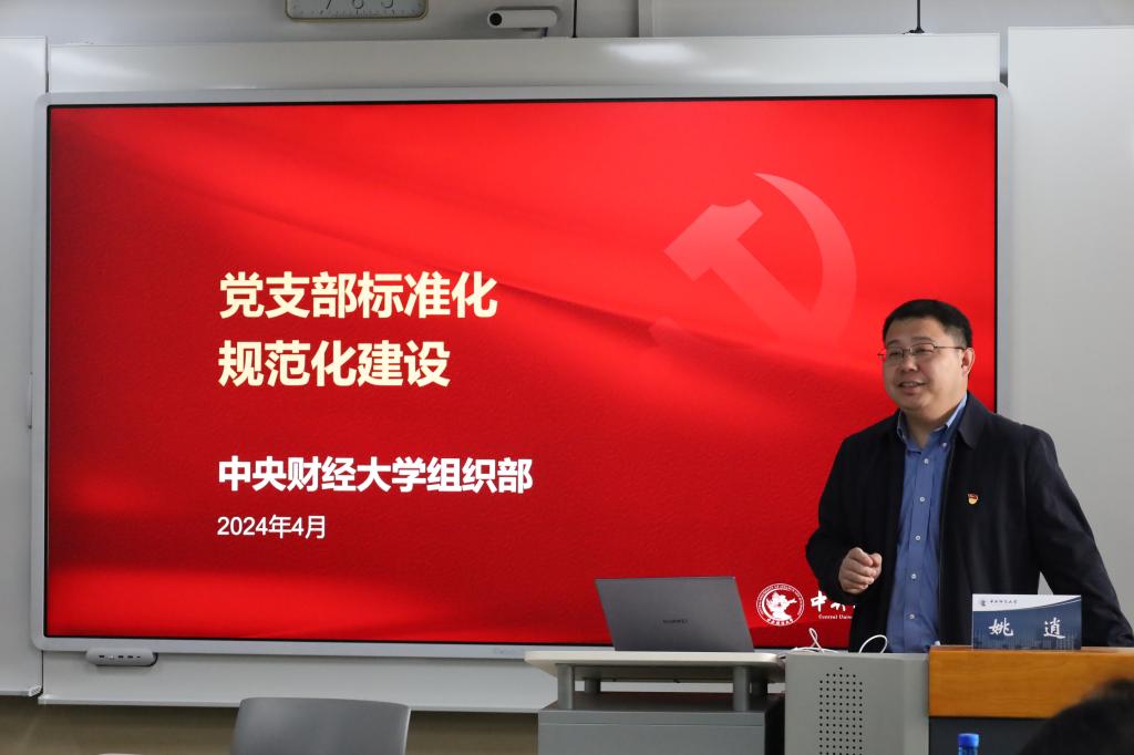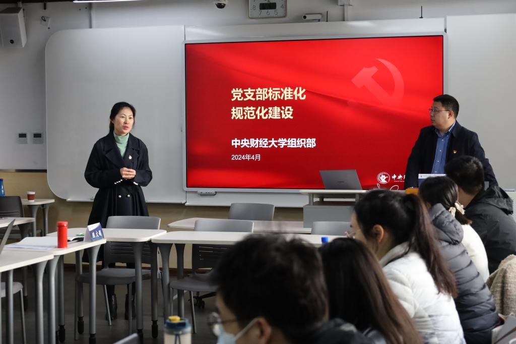 2024年4月10日下午在10号学院楼317教室,组织部姚逍副部长为beat365党务工作者进行党支部标准化规范化建设专题培训,培训由学院党委书记陈文娟主持,党委副书记徐芳,全院党支部书记及支委参加了会议。