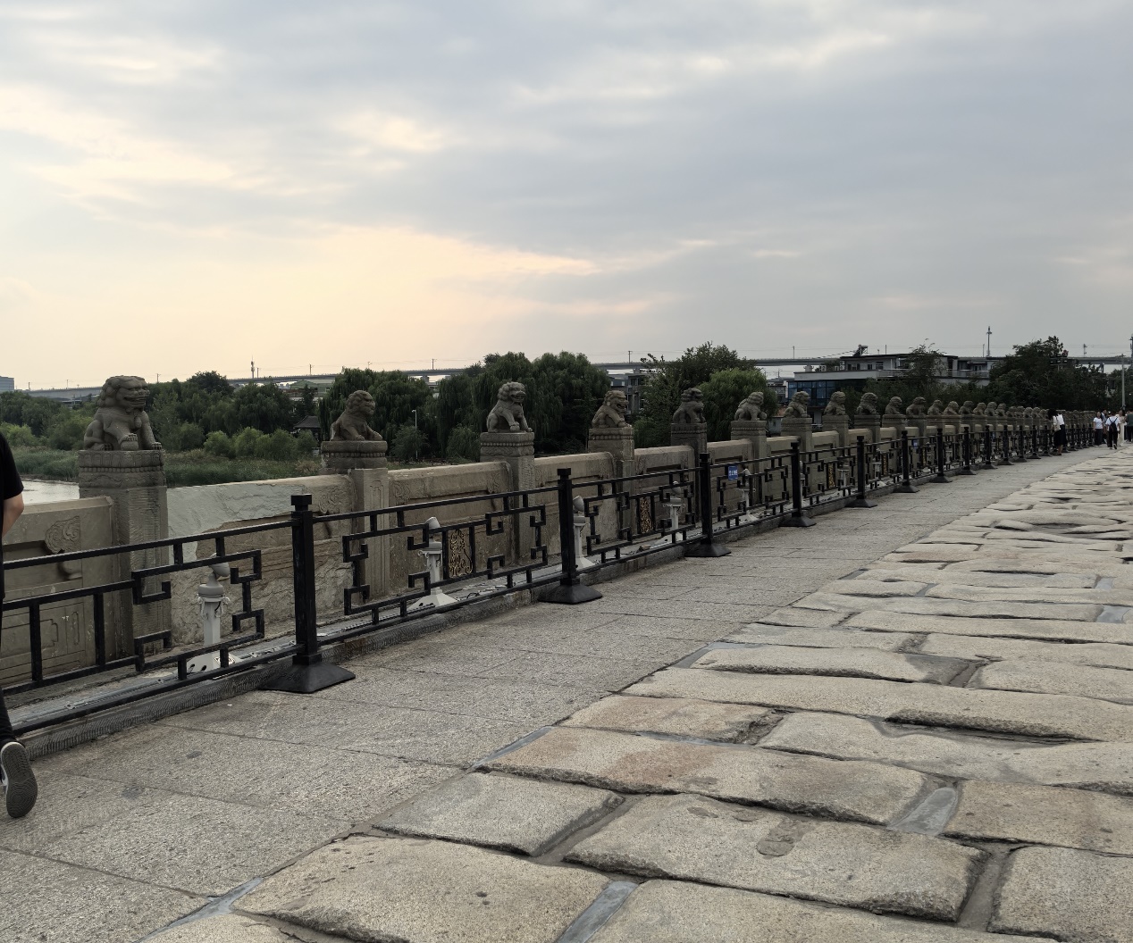 卢沟桥位于北京市丰台区永定河上,因横跨卢沟河(即永定河)而得名,是北京市现存古老的石造联拱桥。民国二十六年(1937年)7月7日,日本在此发动全面侵华战争,史称“卢沟桥事变”(亦称“七七事变”)。中国抗日军队在卢沟桥打响了全面抗战的第一枪。为更好地了解抗日战争的历史文化,此次活动还组织师生们赴卢沟桥历史博物馆和卢沟桥的参观学习,大家踏上曾饱受战火摧残的卢沟桥,宁静的永定河与卢沟晓月交相辉映。作为历史见证的石狮子仿佛诉说着那段国弱受欺的历史;站在卢沟桥上,子弹呼啸、炮火轰鸣的战斗声仿佛仍在耳边回响;走在卢沟桥浸满历史悲痛的旧石上,仿佛看到当年浴血奋战的中国军人与如今前来观瞻的游客在不同时空交织重叠。大家不禁感慨,这具有重要深刻历史意义的地方总能引人深思,也让大家对伟大抗战精神有了更加深刻的理解,更加深刻体会到如今的幸福生活来之不易。而卢沟桥上的烽火,是跨越时空也永不能忘的历史记忆!