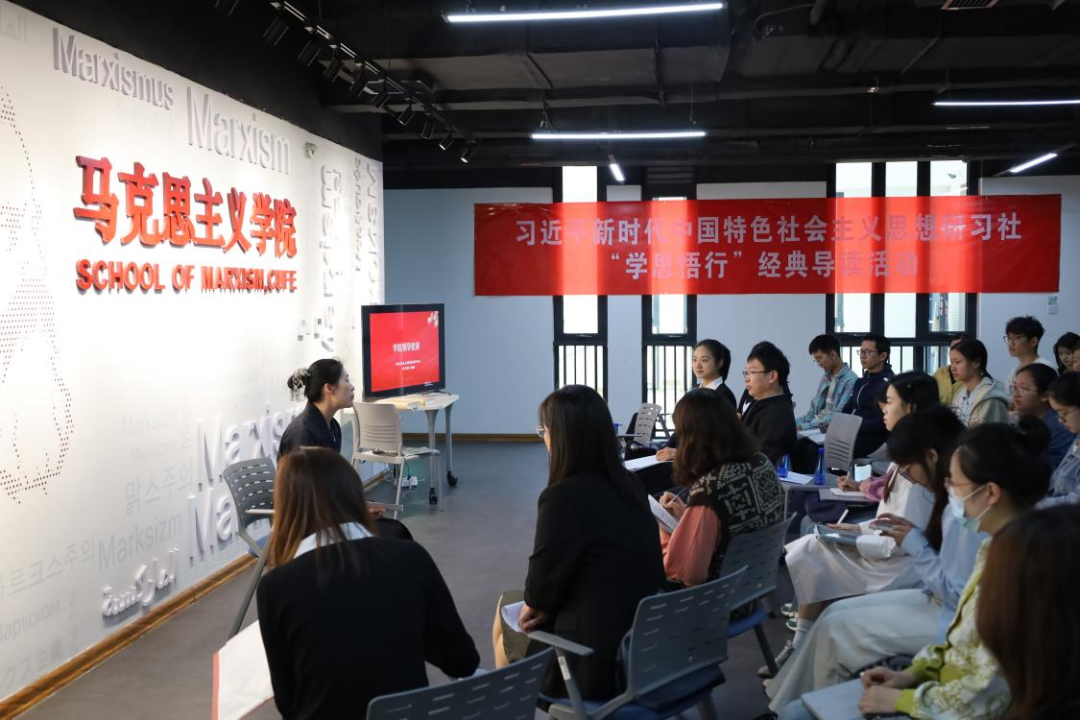 研习社自2017年成立以来,定期围绕马克思主义中国化时代化的最新理论成果开展主题导读与专题研讨活动。研习社聚焦打造“学思悟行”思政育人品牌活动,开展了以“中国式现代化”“习近平文化思想”和“毛泽东思想”为主要内容的系列经典导读活动。