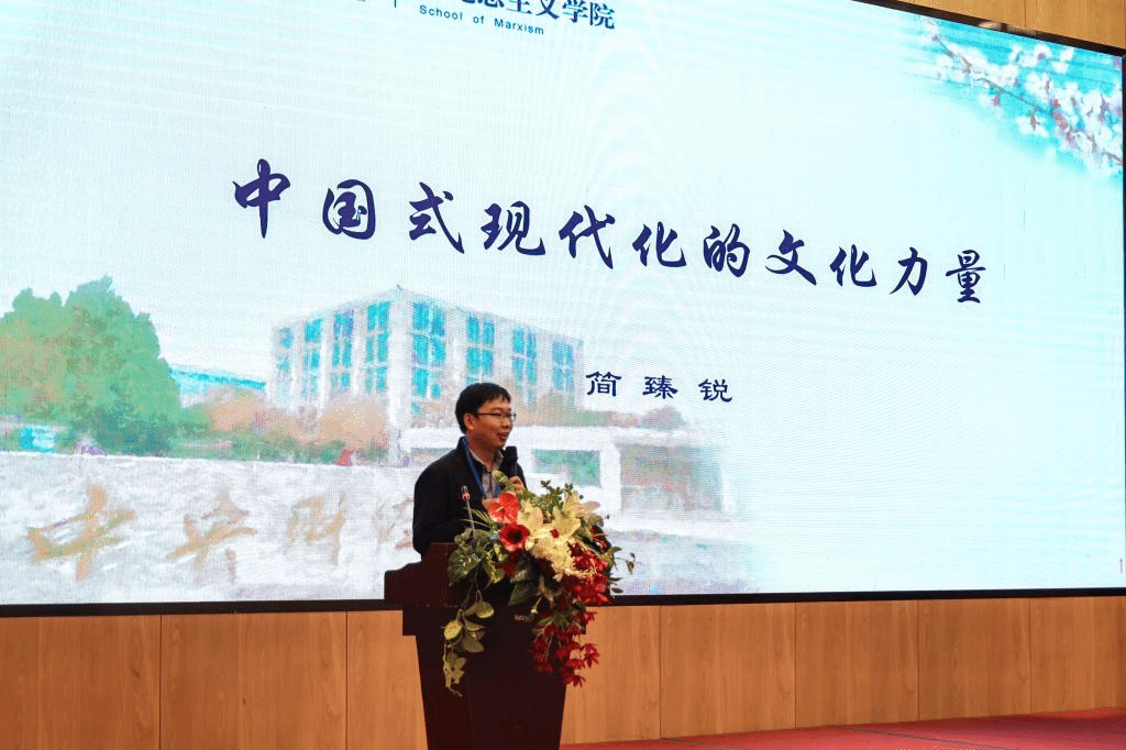beat365教师简臻锐副教授应邀参加本次活动,并作题为《中国式现代化的文化力量》专题报告。报告以中国式现代化的提出及其文化命题为导入,重点解答了如何从中国式现代化的“中国特色”探析其所蕴含的文化力量,主要包括以下五个方面:从理想信念看实现人口规模巨大现代化的文化引领力,从核心价值观看实现全体人民共同富裕的文化凝聚力,从中国精神看推动物质文明与精神文明协调发展的文化内生力,从整体观念看促进人与自然和谐共生的文化涵养力,从道德追求看坚定不移走和平发展道路的文化包容力。