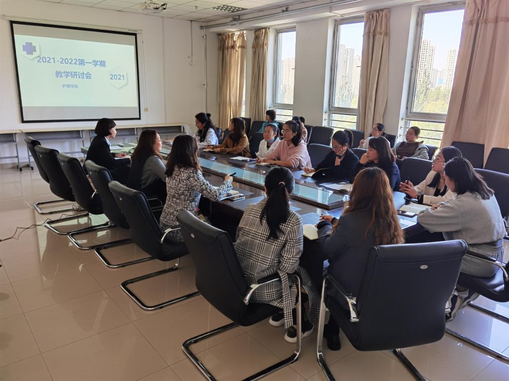 2021年10月12日,护理学院举行2021-2022第一学期教学研讨会。研讨会主要围绕课程建设、教研室建设、二级督导组工作制度的完善和任务分配以及集体备课革新进行探讨。院长郭宏、副院长刘蕾、副院长赵冰以及全体专任教师参会。 会议首先传达了教务处关于上半年工作总结和下半年工作计划内容。结合教务处工作重点,护理学院制定了本学期工作重点。 为了进一步加强课程建设与管理,强化护理学院教学基层组织建设,根据《沈阳...