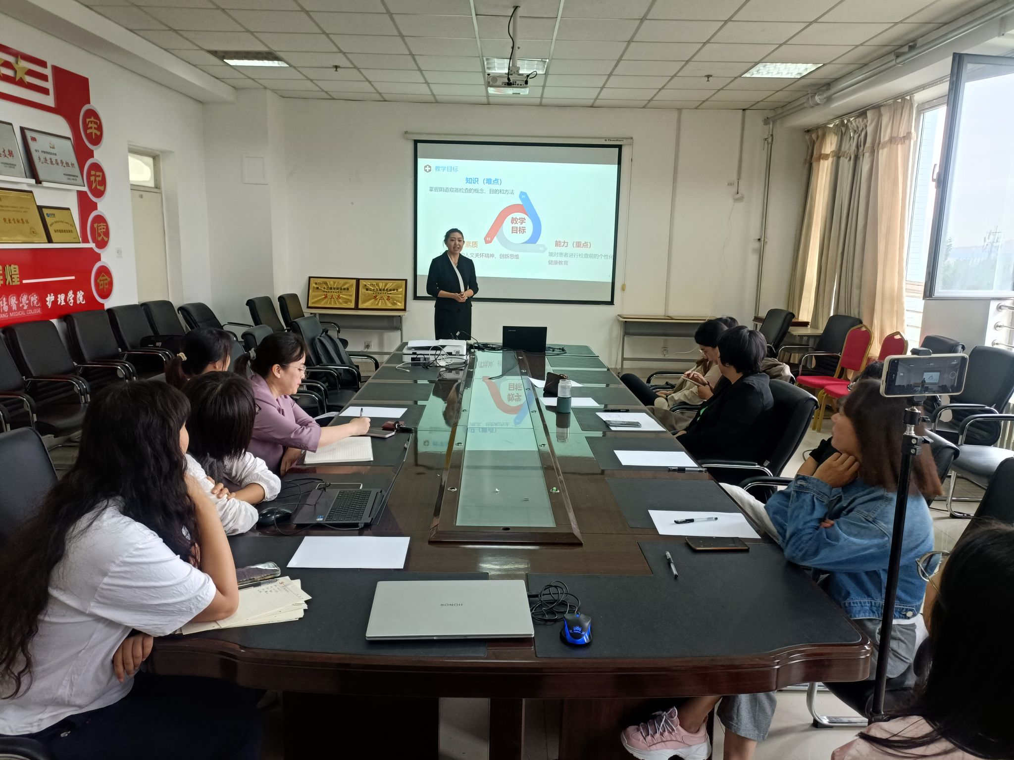 为促进护理学院师资队伍建设,提高教师的综合素质和能力,使新教师掌握教学理论、技能,培养基本教学能力,树立立德树人理念,适应教师岗位要求,按照《护理学院新入职教师培训考核计划》,护理学院于9月6日下午举行新入职教师试讲。 试讲从说课、教学基础技能、课程设计、教学手段、教学方法、专业理论基础、思政、讲义以及教案等方面进行考核。评委由郭宏院长、刘蕾副院长、赵冰副院长,基护教研室主任伏蓉、助产教研室负...